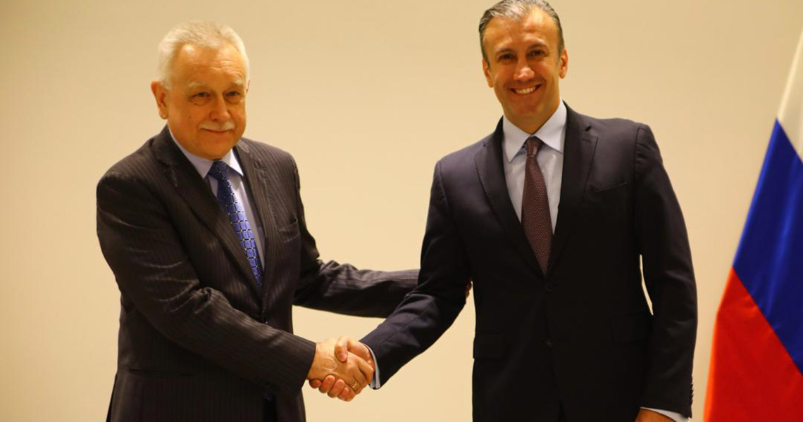 “En la sede del Ministerio del Poder Popular de Industrias y Producción Nacional, el Vicepresidente del Área Económica Tareck El Aissami, se reúne con VLADIMIR ZAEMSKIY, de Rusia ante el Gobierno de Venezuela para revisar proyectos de cooperación económica entre ambas naciones”, informó la planta a través de la mencionada red social.