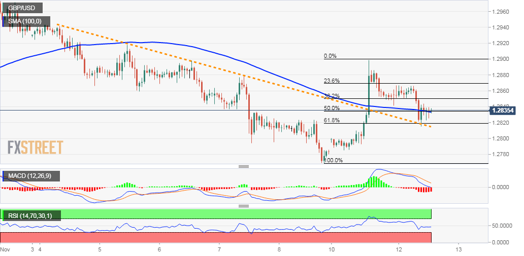 El par GBP/USD extendió el retroceso de la sesión anterior desde la zona de 1.2900 y extendió el tono bajista el martes. Sin embargo, el par mostró cierta resistencia por debajo de la media móvil simple de 100 horas y logró encontrar algo de apoyo cerca de un punto de quiebre de resistencia de línea de tendencia descendente de una semana de antigüedad, alrededor del área de 1.2820.