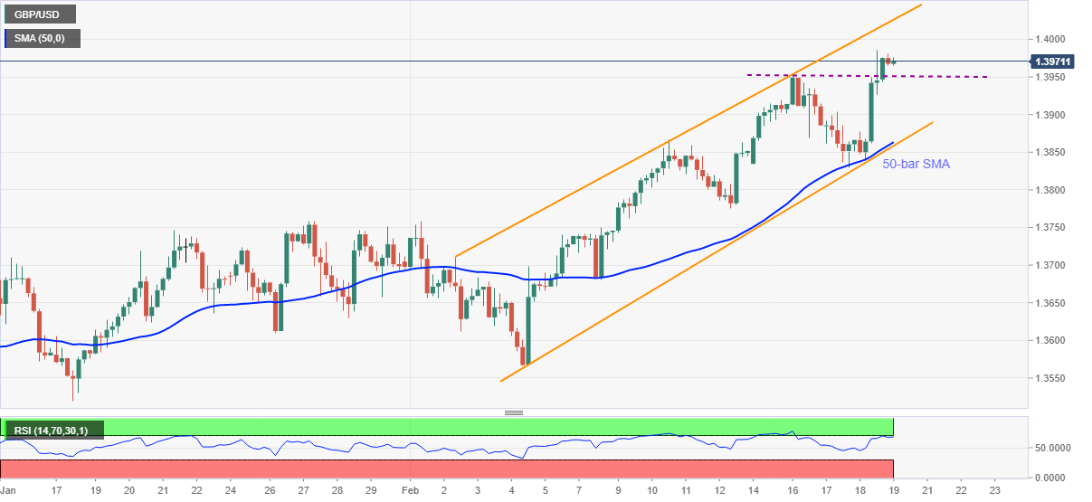 El GBP / USD baja desde el máximo de 34 meses marcado el día anterior mientras toma rondas a 1.3970, un 0.05% menos intradía, durante la sesión asiática del viernes.