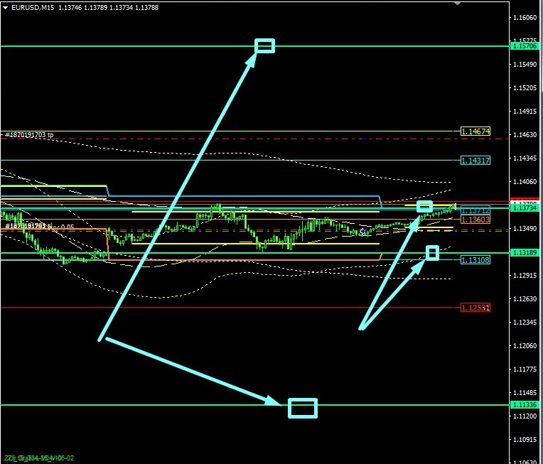 La cancelación del escenario sur es una ruptura de 1.1335. En la M15, atravesaremos el nivel de 1.1335 y lo giraremos hacia el sur, pero allí será necesario otro escenario. Bueno, hasta ahora, tenemos el escenario del norte. Hoy, si todo va bien, lograremos 1.1450, y si no hay movimientos, estaremos esperando la próxima sesión asiática, porque solo los asiáticos funcionan bien ahora.
