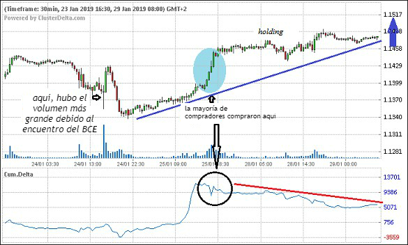 Es muy importante entender que en el fondo, tenemos un comprador pronunciado con una clara formación de compra intradía.