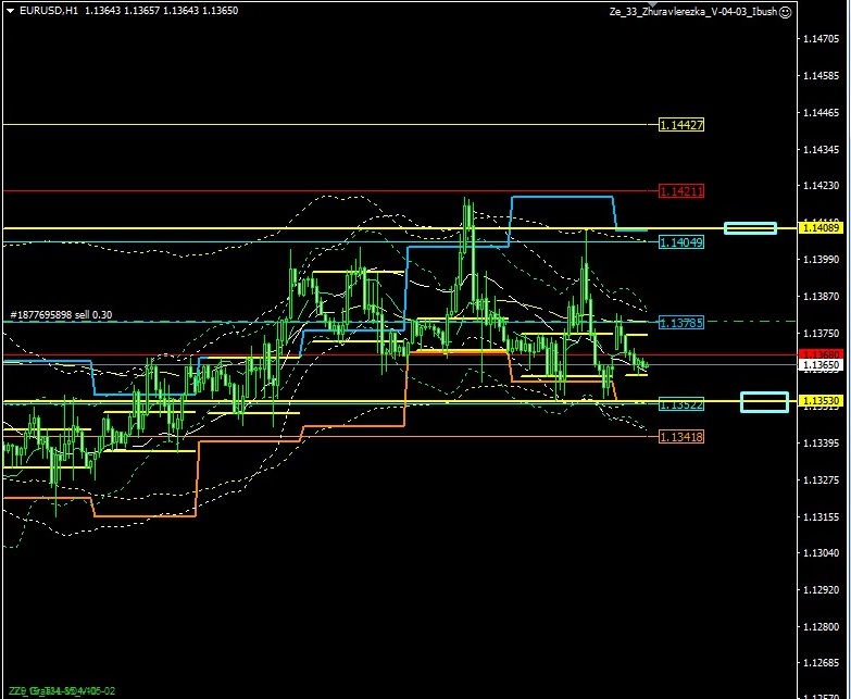El nivel de ayer fue 1.1353. Después de la ruptura, la probabilidad de alza disminuyó como de costumbre. Entonces el precio comenzó a tratar de alcanzar el siguiente nivel de 1.1310.