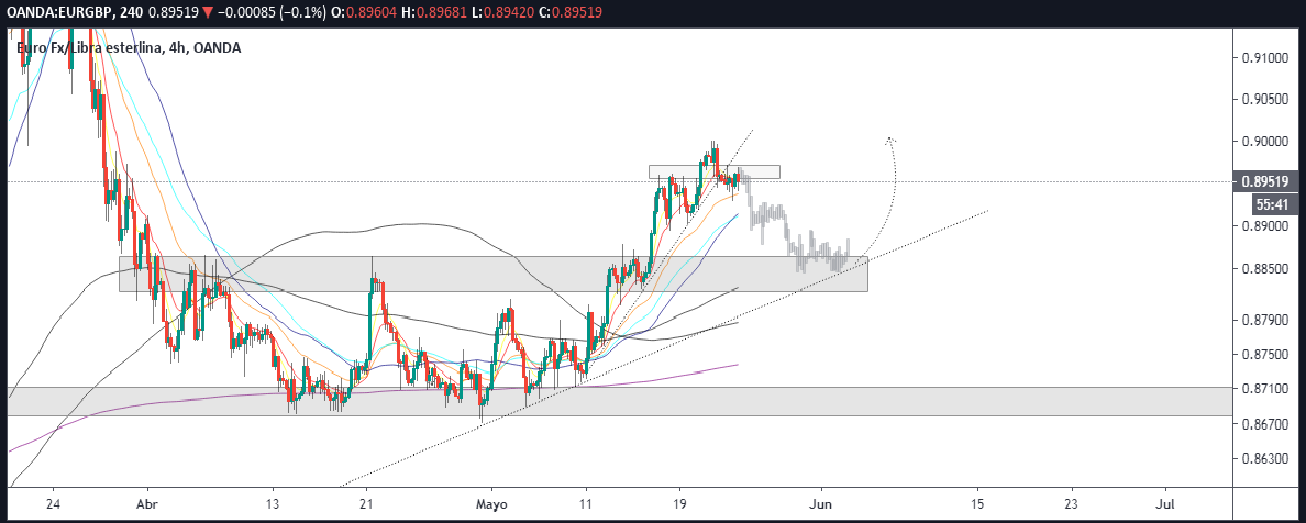 Este par de divisas se movió por encima del nivel de la gran ronda 0.90 en los últimos días de mayo, alcanzando 0.9050, pero retrocedió nuevamente. Durante algunas semanas vimos otra operación de rango en EUR / GBP. Pero, el Euro ha sido más optimista que el GBP, con Europa saliendo del bloqueo.