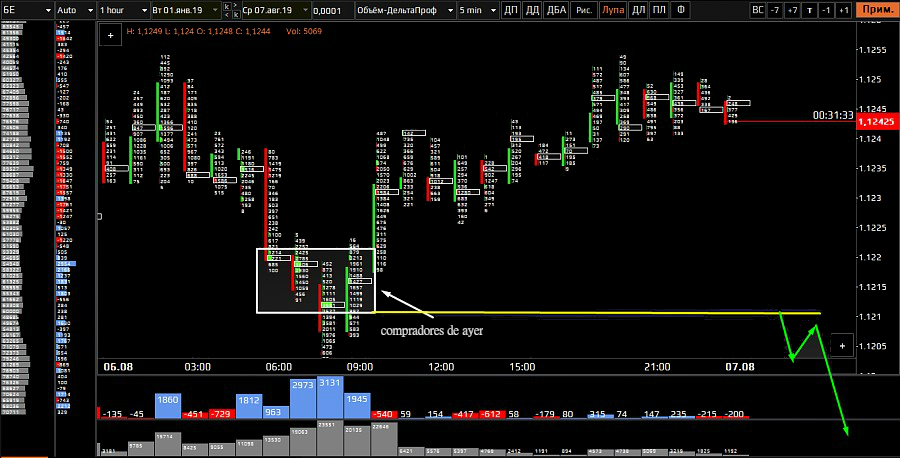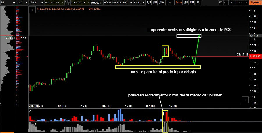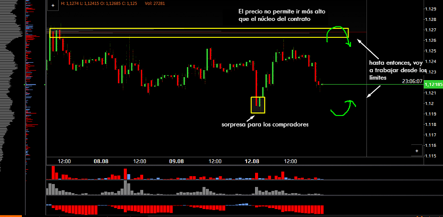 Si consideramos comprar ofertas dentro del día, el área de fijación no debe ser superior a 1.1230.