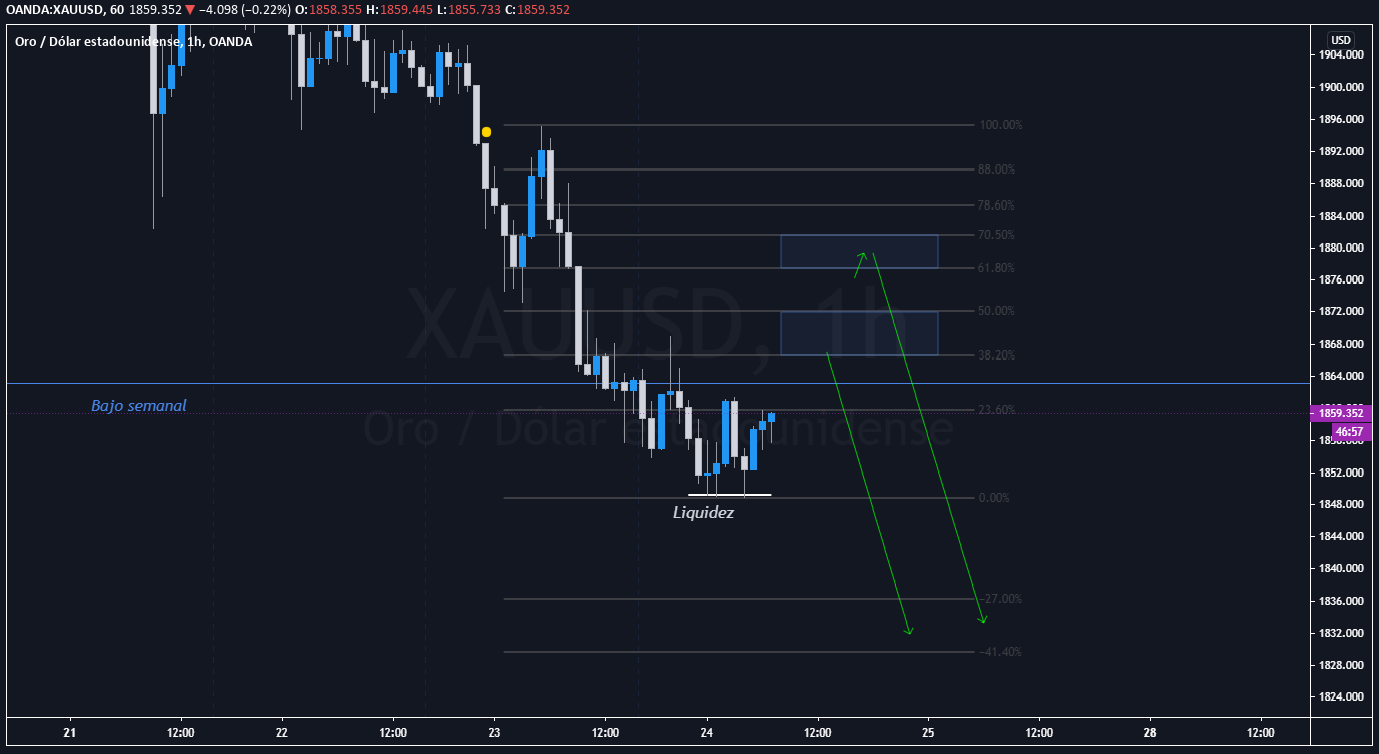 Que tal colegas, no ha sido la mejor semana para los que nos gusta invertir en oro, ya que el metal amarillo ha caído 4.36% desde el lunes. Al final de la semana, el precio ha comenzado a consolidarse en el área de USD 1865 por onza. Esto no significa que el movimiento más bajo haya terminado, sólo significa que hay algún equilibrio por ahora.