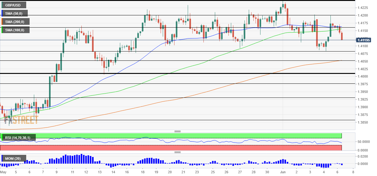 La resistencia espera en 1.4160, la confluencia de las SMA de 50 y 100. Le sigue 1,41, que mantuvo al GBP / USD bajo dos veces la semana pasada, y luego 1,4250.