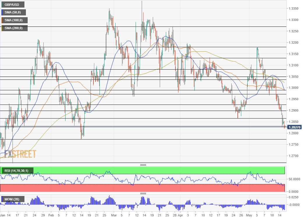El GBP/USD está luchando alrededor de 1.2830, que fue un mínimo en febrero. Otro mínimo de ese mes, 1.2775, es una línea de soporte crítica. A continuación, el siguiente nivel a destacar es 1.2670, que ofreció soporte en enero.