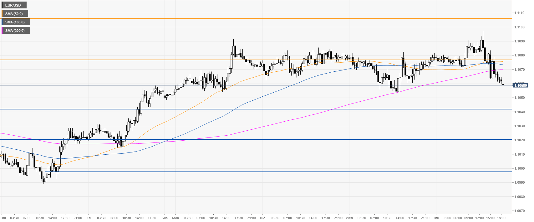 El EUR / USD continúa desvaneciendo el optimismo inicial y ahora está bajo presión después de ser rechazado desde los máximos semanales en los límites de la marca de 1.11 el jueves.