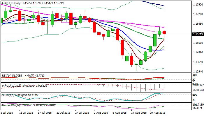 La junta de ** siguió girando en torno al presidente estadounidense Trump, con el dólar depreciándose bruscamente a mitad de sesión en Europa, en encabezados que indican que su ex abogado, Michael Cohen, tiene detalles de una conspiración rusa para manipular las elecciones. Aunque es poco probable que ocurra, la palabra "acusación" comenzó a sonar de nuevo. Las noticiasempujó al EUR / USD hasta 1.1622, un nivel de resistencia estática mayor que el par no pudo superar. El calendario macroeconómico no ofrecía mucho, ya que no había emisiones en la UE, mientras que los EE. UU. Publicaron las cifras de ventas de viviendas existentes de julio, que, por cierto, decepcionaron al caer un 0,7% frente a un avance esperado del 0,6%. El Acta de la reunión del FOMC insinuó un alza en las tasas de septiembre, pero agregó una nota de moderación, ya que las preocupaciones sobre cómo las disputas comerciales podrían interrumpir el crecimiento han aumentado. Los temores de que las crecientes tensiones podrían evitar que la Reserva Federal volviera de nuevo después de septiembre, enviaron al USD ligeramente por debajo de todos sus rivales.