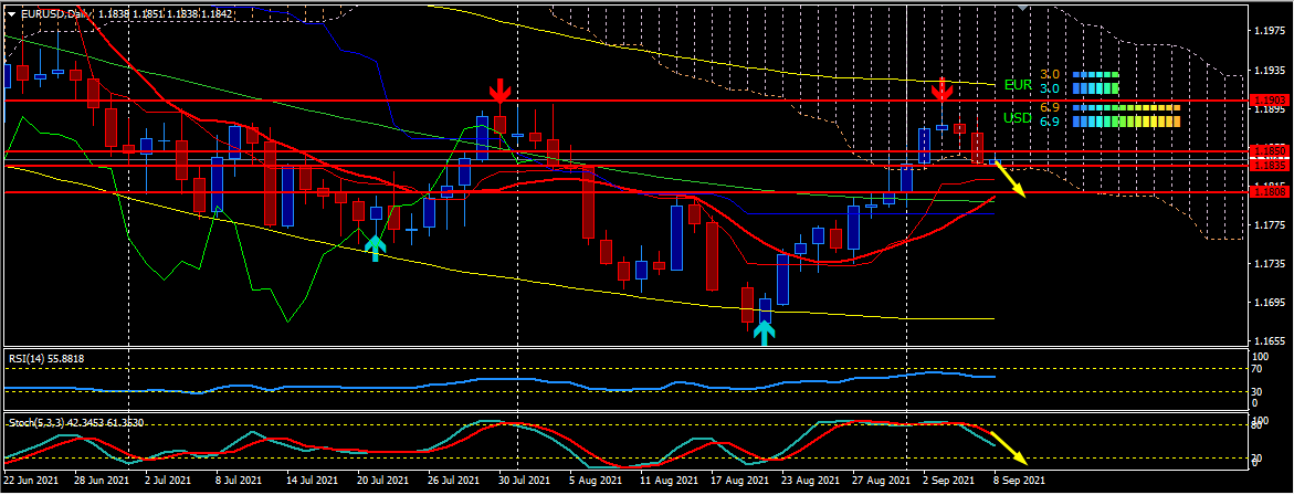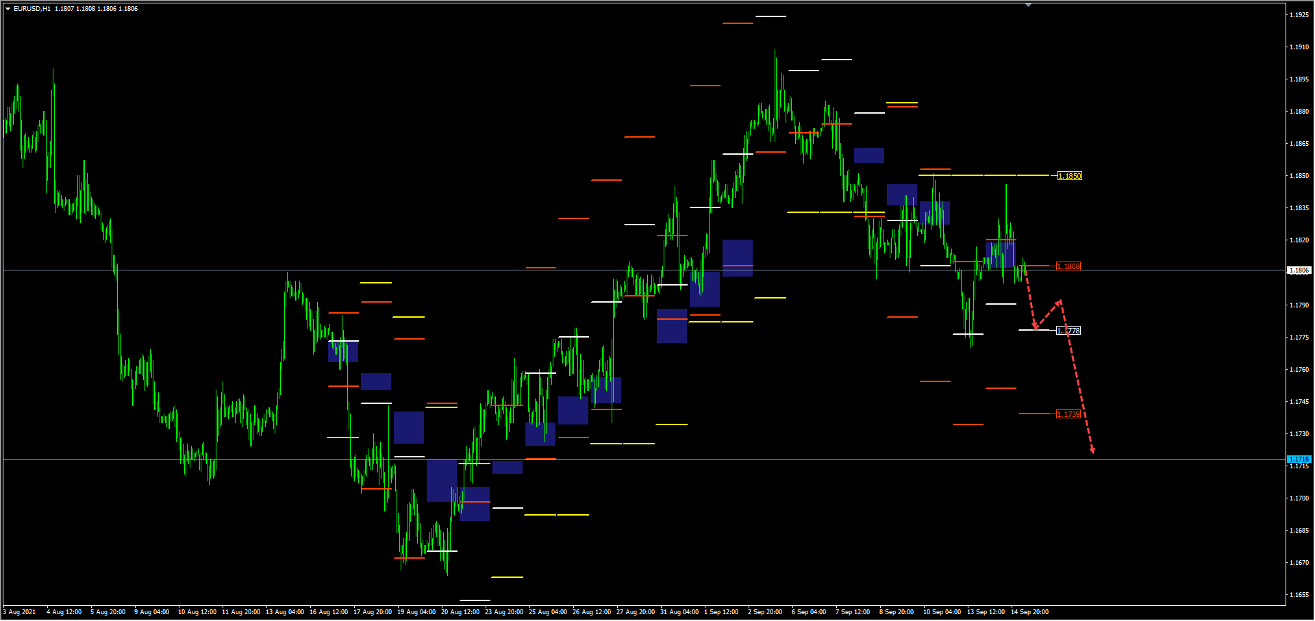 Por lo tanto, si el precio se detiene cerca de MA14 y no sube por encima de 1,1840,