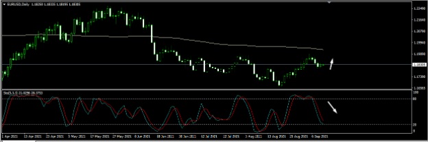 el indicador estocástico se encuentra en la parte inferior, lo que limita la carrera bajista del par, ya que en cualquier momento puede girar al alza.