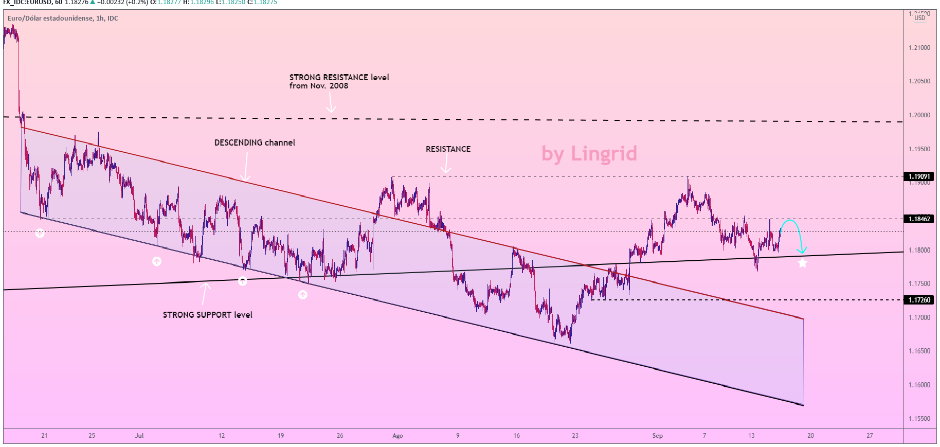 ¡Hola a todos! Pienso que el par euro/dólar está a la baja. Hoy va a ser un día bastante difícil,