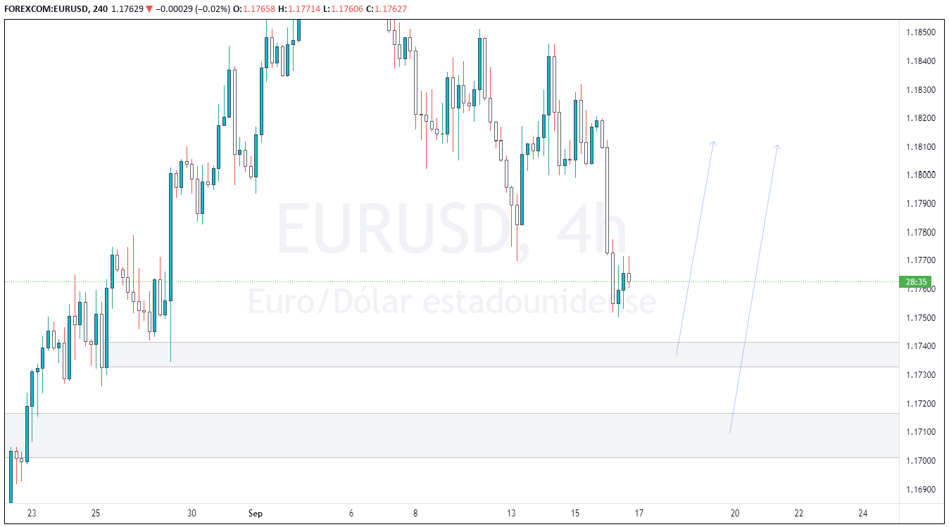 En el gráfico intradía, es probable que se confirme la tendencia bajista porque el precio bajó del nivel de ruptura en 1,17291.