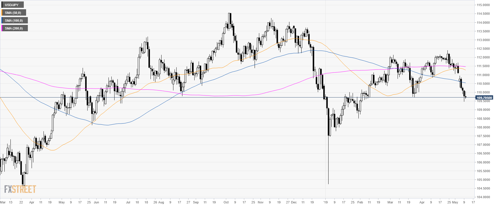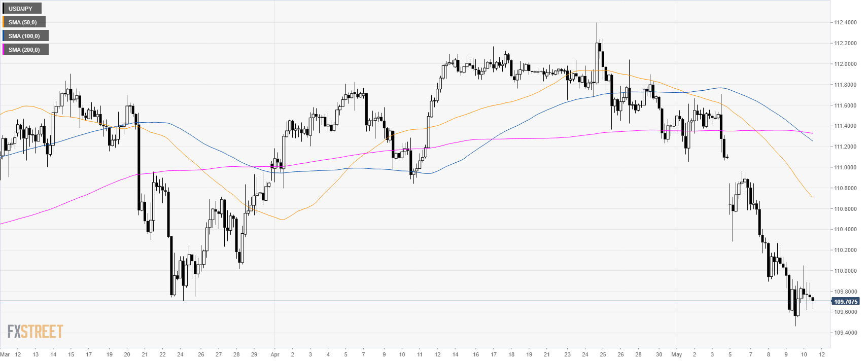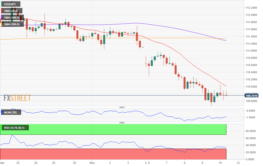 El USD/JPY está operando fuertemente por debajo de 110.00 y las principales SMA que sugieren un sesgo bajista en el mediano plazo.