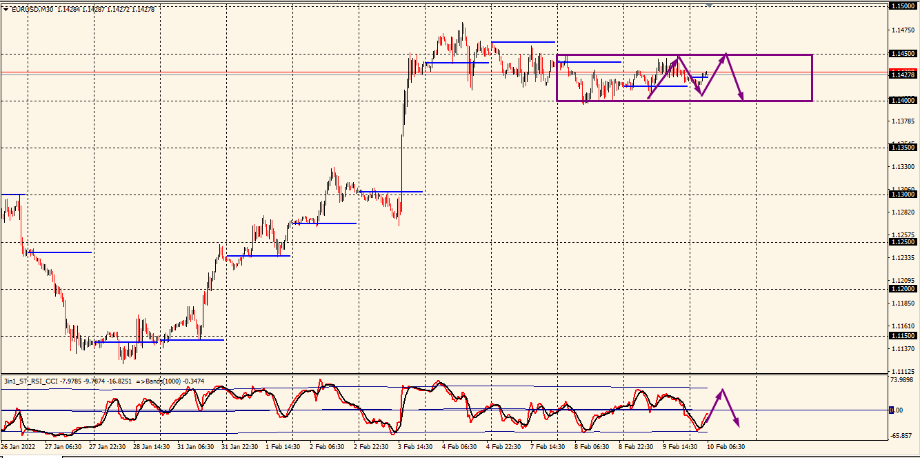 ¡Hola a todos! El par euro/dólar continúa operando dentro de un rango lateral limitado por los niveles de 1,1400 y 1,1440.