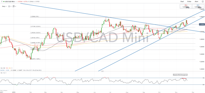 CUADRO DE PRECIOS DE USDCAD: Marco de tiempo diario (diciembre de 2017 - noviembre de 2018)