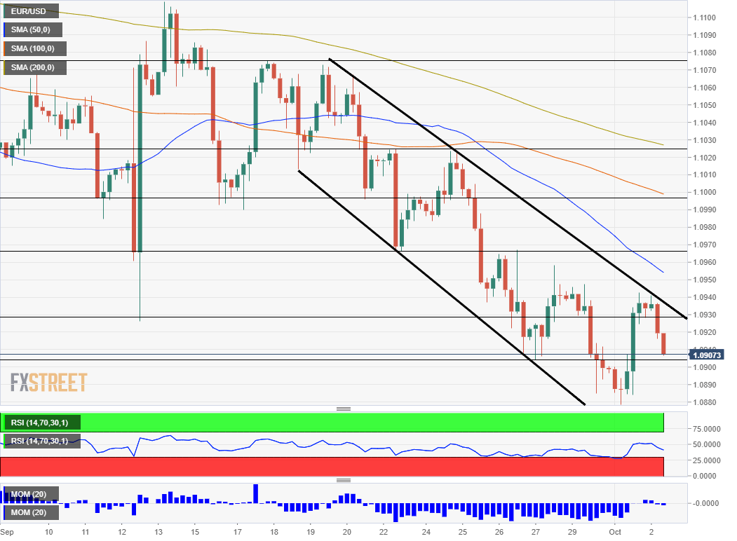 El par EUR/USD comenzó la semana extendiendo su último descenso, cayendo por segundo día consecutivo y perdiendo el nivel 1.1000. El tono débil de la moneda común fue respaldado por la aversión al riesgo, ya que la incertidumbre en torno a la guerra comercial entre Estados Unidos y China ha llevado el interés especulativo a los activos de refugio seguro. Más tarde, el euro se vio afectado por los datos locales, ya que el PMI Markit preliminar de septiembre fue peor de lo esperado.