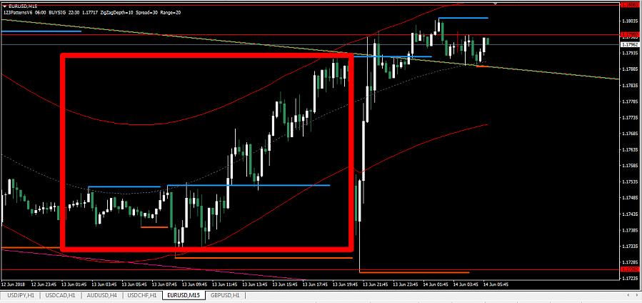 ¡Hola operadores! Ayer, el euro mostró sus dientes y nos engañó a todos. Si consideramos la actividad comercial durante un anuncio sobre el aumento de la tasa y la declaración política, todo parece bastante lento. La volatilidad fue ligeramente más de 70 pips, que es el movimiento usual del euro antes de que abra la sesión estadounidense. Esto sugiere una idea de que no vamos a romper 1.1745-1.1730, sino solo arrastrar a los participantes del mercado redundante. La misma situación se desarrolló con otros pares de divisas. Ayer por la noche, me quejé de que mi orden buy limit no fue activada por un aumento desde los mínimos. Durante la publicación de noticias, cancelé todas las órdenes limit, solo por si acaso. No obstante, pude comprar en mínimos. Esperé hasta que el gráfico de 15 minutos dibujara el rechazo desde el nivel e inmediatamente abrí una orden de compra.