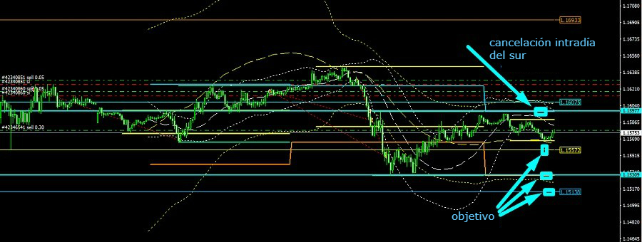El color amarillo en la captura de pantalla indica una ruptura de 1.1595, luego empezamos a observar el norte, los posibles niveles rebotantes son 1.1560 y 1.1550, estos niveles solo finalizarán el ciclo en M15 en el bajo mínimo y cerca del mínimo, esto debe ser una orden en todos lados y en caso de un zigzag. Así que les deseo éxito a todos.