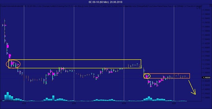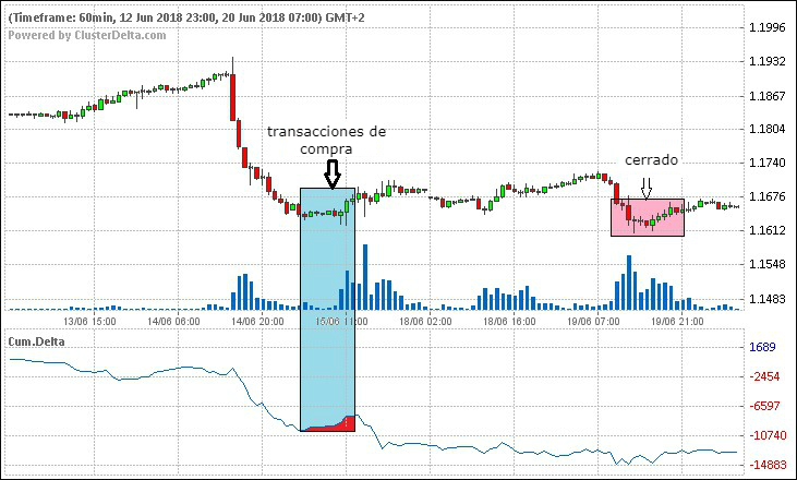 El gráfico no es favorable para las operaciones largas. El jueves, el movimiento al sur fue desencadenado. Los precios del suelo son 1.1543 – 1.1573 que coinciden con los niveles del cluster en el gráfico que fue analizado, y los precios mostraron una reacción contra tendencia. Pero el rebote fue de corto plazo. Asimismo, ayer las transacciones de venta fueron cerradas por las órdenes stop. Y de nuevo hubo una actividad débil de los compradores. Los toros son puestos bajo presión. Es mitad de semana, el pico del comercio.