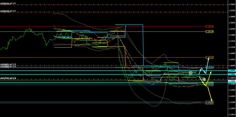 Ahora consideremos las opciones del movimiento, todo lo que espero está marcado en amarillo, el nivel 1.1520-1.1490, que está marcado en azul, será el momento decisivo para el EURUSD hoy, si nuestro movimiento se rompe y se conduce en la dirección opuesta. Se adjunta la captura del movimiento: