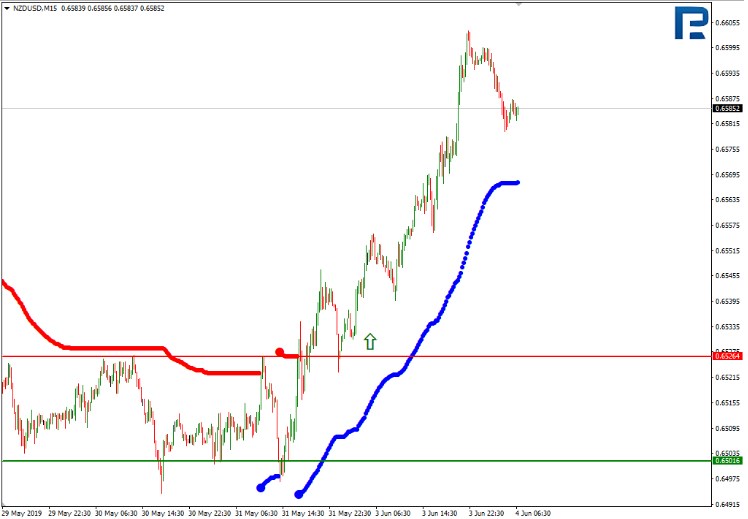 Como podemos ver en el gráfico M15, el par ha roto la línea al alza del indicador VoltyChannel y, como resultado, puede continuar operando hacia arriba.