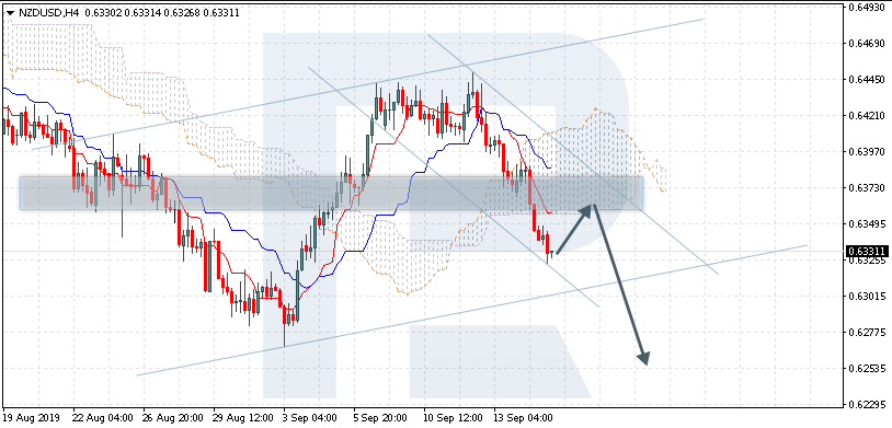 NZD / USD: Se cotiza a 0.6336; el instrumento se mueve debajo de la nube Ichimoku, lo que indica una tendencia descendente. Los mercados podrían indicar que el precio puede probar el límite al alza de la nube en 0.6350 y luego reanudar el movimiento hacia abajo para llegar a 0.6250. Otra señal para confirmar un mayor movimiento descendente es el rebote del precio desde el nivel de resistencia. Sin embargo, el escenario que implica una mayor caída puede cancelarse si el precio rompe el límite superior de la nube y se fija por encima de 0,6370. En este caso, el par puede continuar creciendo hacia 0.6455. Después de romper el límite descendente del canal ascendente y fijarlo por debajo de 0.6295, el precio puede continuar bajando.