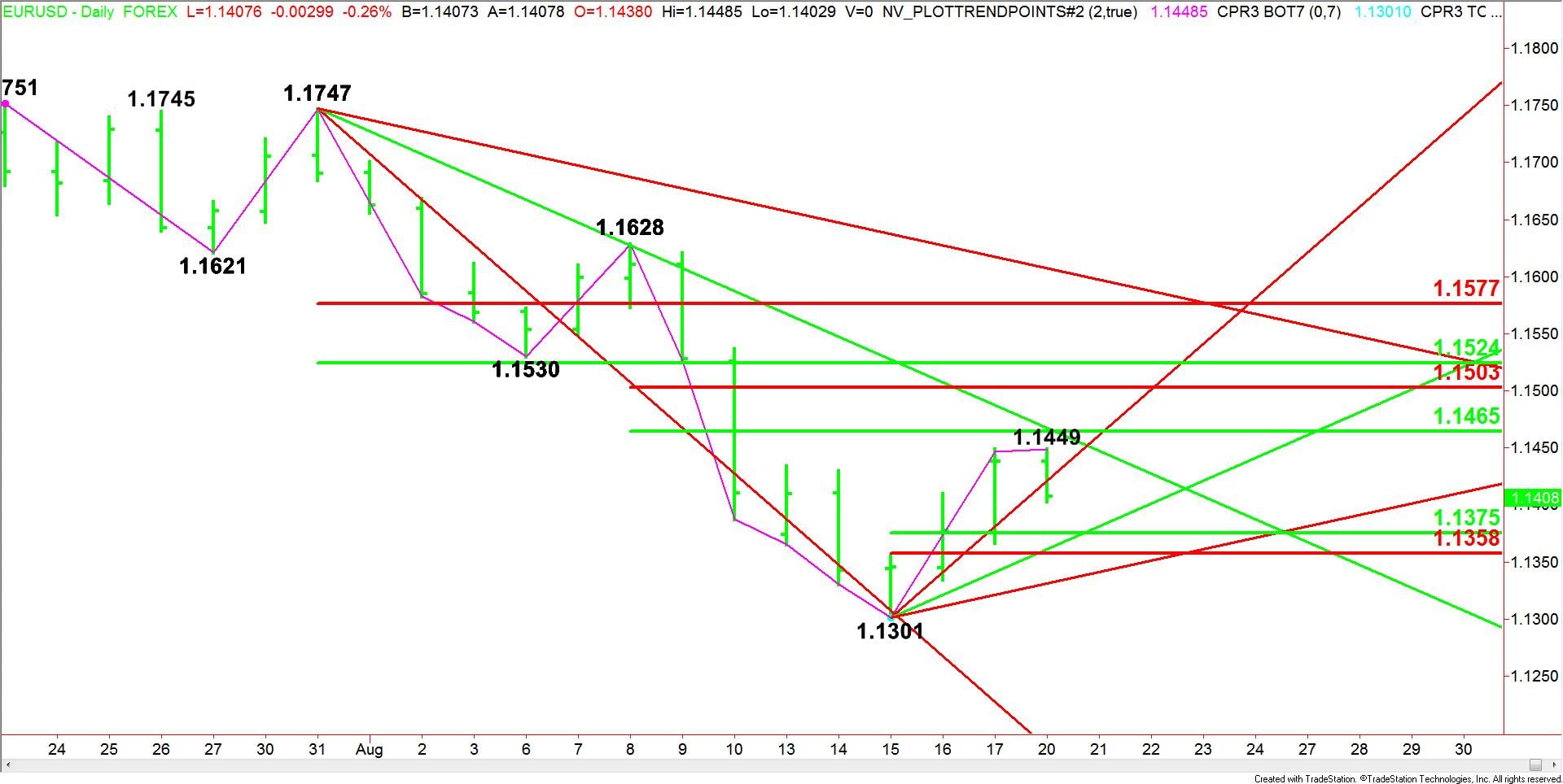 Un movimiento sostenido por debajo de 1.1421 indicará la presencia de vendedores. Esto podría desencadenar una aceleración al nivel de 50% a corto plazo en 1.1375, seguido por un ángulo de Gann alcista en 1.1361 y el nivel del 50% a corto plazo en 1.1358. Esté atento a una entrada de los compradores agresivos contra tendencia en una prueba de esta zona.