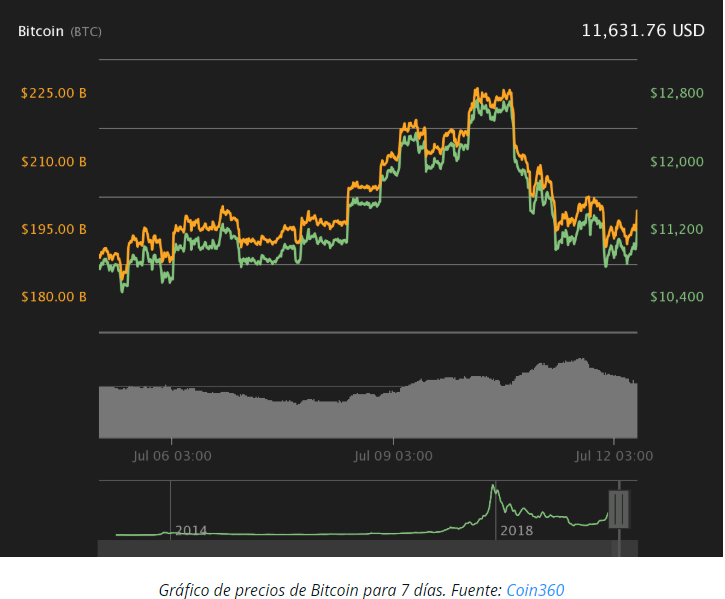 Las dudas sobre el resurgir del bitcoin vuelven a planear sobre el mercado. El arranque de año había sido esperanzador y su precio había pasado de los 3.900 dólares a superar, durante este mes, la cota psicológica de los 13.000 dólares. No obstante, y tras las últimas noticias, cotiza en los mencionados 10.350 dólares. Les comparto una imagen que evidencia lo mala que ha sido esta semana, esperando que la tendencia mejore en los proximos dias. Qué crees que pueda pasar ahora?