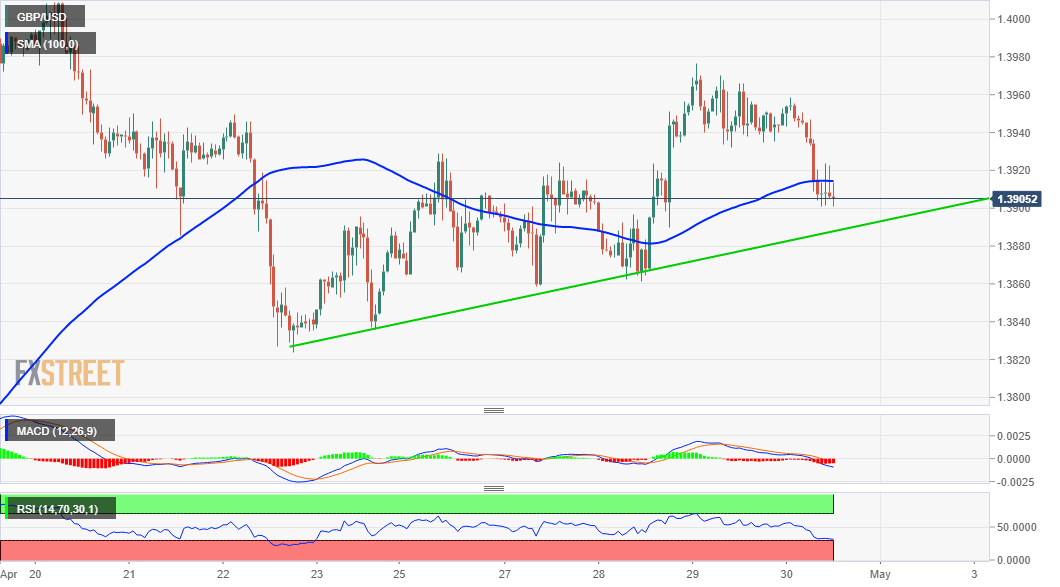 Desde una perspectiva técnica, el par GBP / USD ahora ha vuelto a caer más cerca de una línea de tendencia ascendente de una semana de antigüedad. El soporte mencionado está vinculado cerca de la región de 1.3885, que si se rompe de manera decisiva podría provocar algunas ventas técnicas. El par podría entonces acelerar la caída hacia mínimos semanales, alrededor de la región de 1.3860-55.