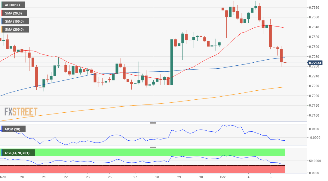 AUD / USD se mantiene por encima de 0.7250, bajista por debajo, alcista si se recupera rápidamente de 0.7300.