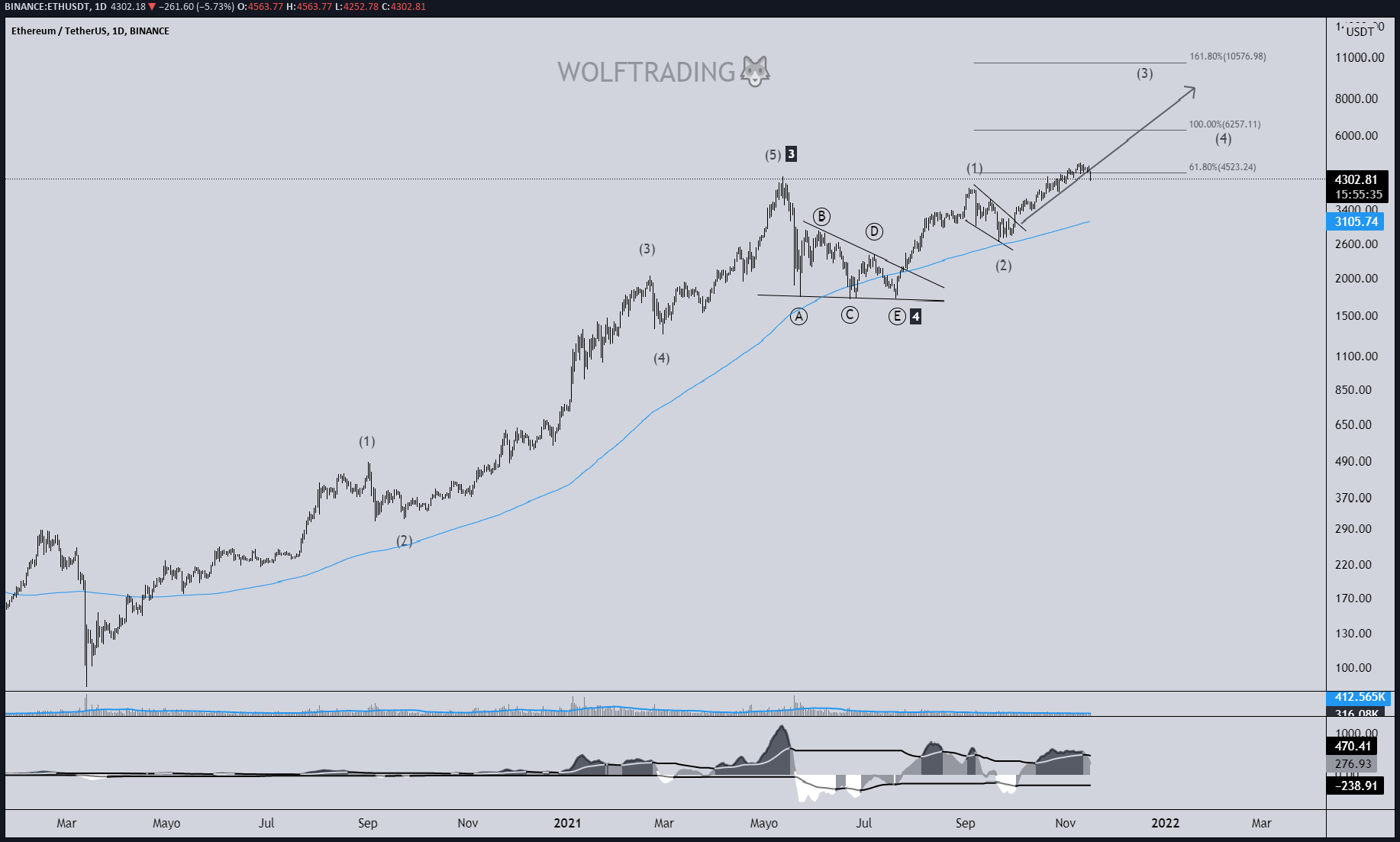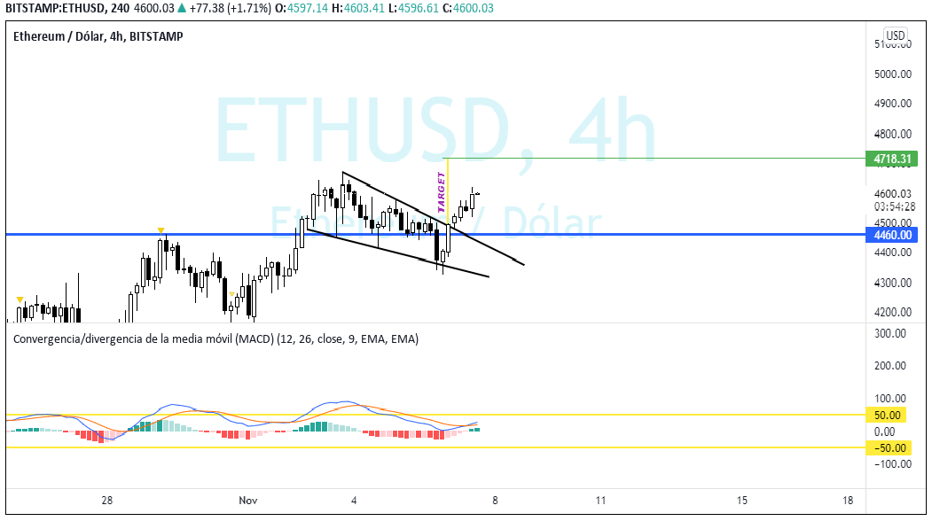 Hola queridos colegas, el volumen de ayer fue significativo y llevó a etherum por encima de $ 4,500 dolares. Si los compradores continúan dominando el mercado, ETH podría subir de precio hasta que encuentre la siguiente resistencia clave. El RSI ha alcanzado mínimos más altos en el período de tiempo diario y, en el momento de esta publicación, todavía parece reacio a superar el nivel de 70 puntos. Una ruptura por encima enviaría un mensaje claro de que ETH es muy optimista, con compradores dominando la acción del precio.