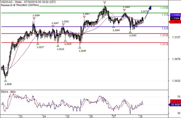 Posiciones largas por encima de 1.3150 con objetivos en 1.3180 y 1.3195 en extensión.