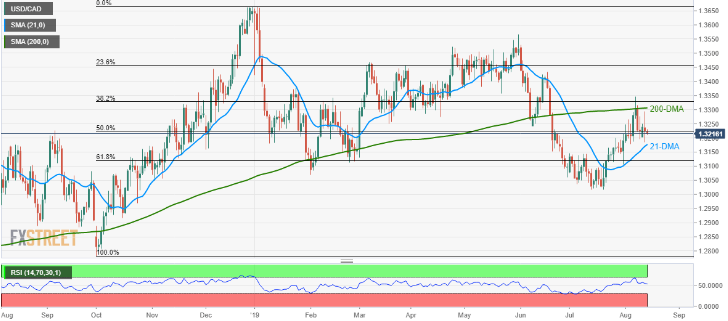 USD / CAD realiza rondas al 50% de retroceso de Fibonacci, ya que cotiza cerca de 1.3215 durante la madrugada del miércoles.