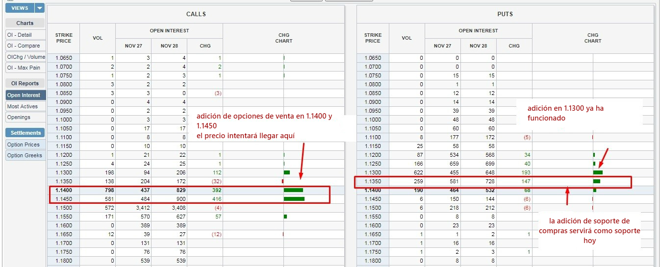 Tras los resultados de ayer, hubo las mayores adiciones de opciones de venta en los niveles de 1.1300 y 1.1350.