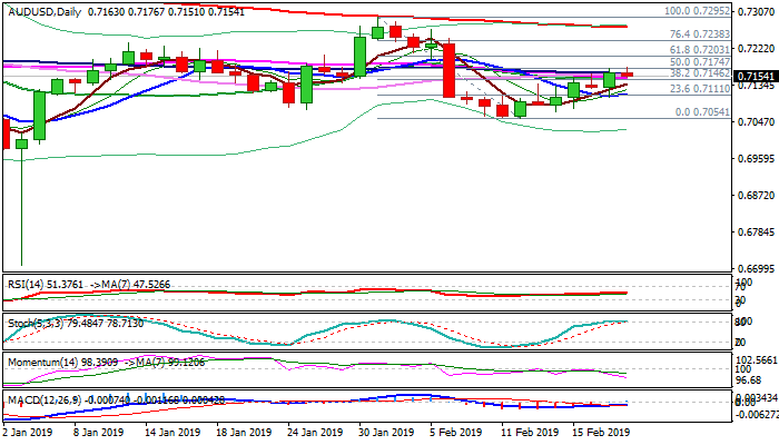 La ruptura sostenida por encima de 0.7147 pivote abriría el camino para la extensión hacia 0.7203 (Fibo 61.8%) y 0.7245 (máximo del 6 de febrero).
