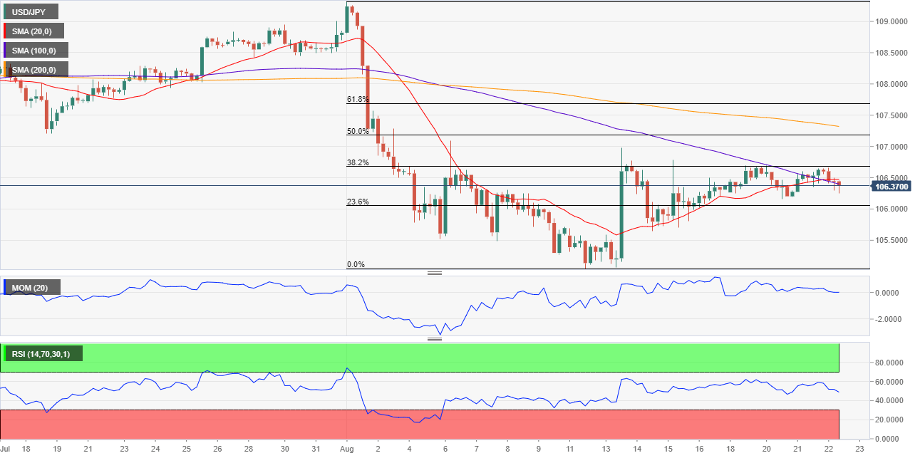 El USD/JPY está en riesgo de volver a probar los mínimos anuales en una ruptura por debajo de 105.60, el soporte inmediato.