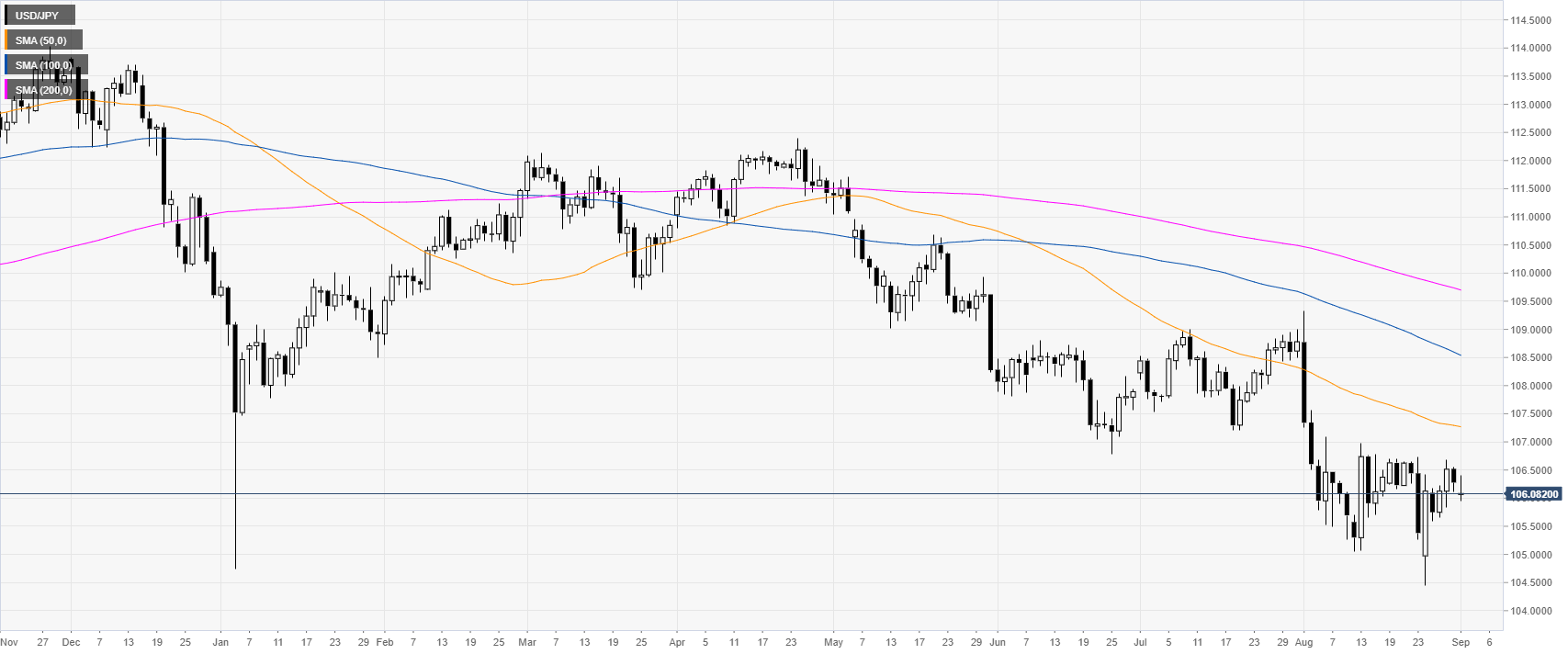 El USD/JPY se está alejando de los mínimos diarios ya que el mercado está tratando de separarse del nivel de 106.14.