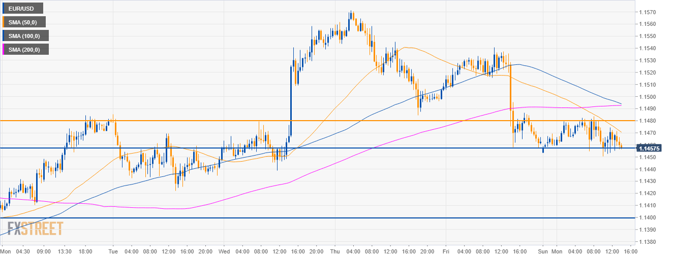 El EUR/USD se está negociando por debajo de sus principales SMA, ya que los bajistas están tratando de romper por debajo del nivel de 1.1450.