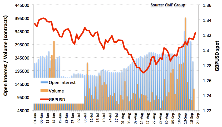 A la luz de los datos avanzados de CME Group para los mercados de futuros de GBP, los intereses abiertos cayeron en alrededor de 74.500 contratos el miércoles, la mayor caída diaria en lo que va del año, frente a los 306.466 contratos del martes. El volumen, en cambio, aumentó en casi 42,000 contratos, revirtiendo la disminución anterior.