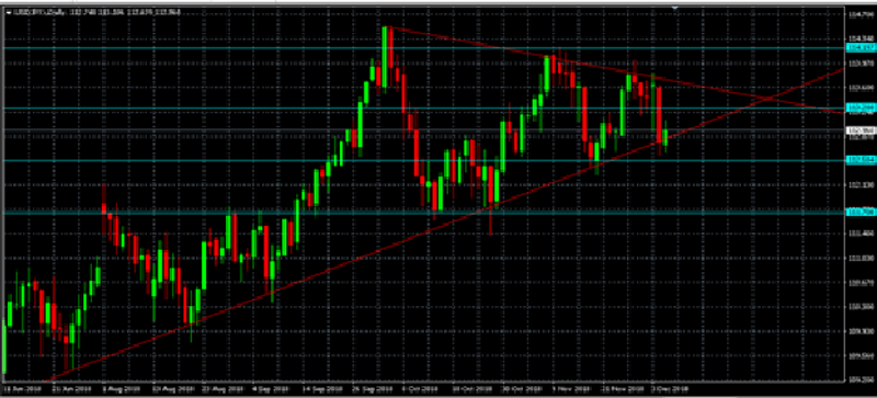 En un momento crucial como en el que nos encontramos en que Estados Unidos y China se encuentran en negociaciones con el objetivo de impedir que el país americano suba los aranceles a productos chinos, el mercado del USDJPY atraviesa una fuerte lateralización, tal y como podemos ver en la imagen inferior, y es que el mercado está perdiendo fuerza tanto en ventas como con compras, haciendo máximos cada vez menores y mínimos cada vez mayores. El rumbo de este mercado dependerá mucho finalmente del resultado de dicha negociación, cuya duración se extenderá a lo largo de los próximos 90 días. Ambas partes están convencidas en que finalmente se debería lograr alcanzar dicho acuerdo.
