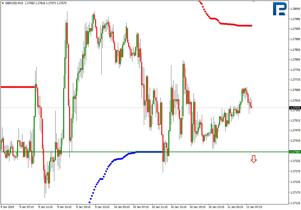 En el gráfico M15, el par puede volver a romper la línea descendente del indicador VoltyChannel y, como resultado, continuar moviéndose hacia abajo.