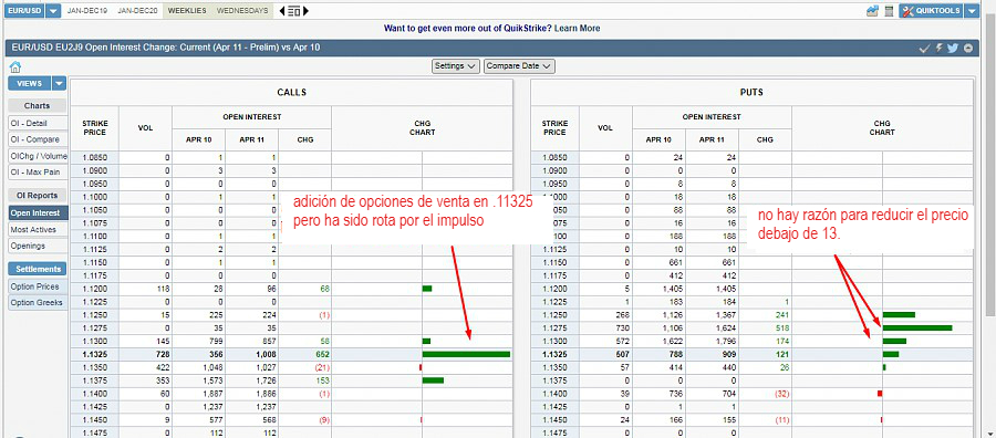 En cuanto a las opciones de venta, la actividad de ayer también fue alta, ya que se agregaron 518 nuevos contratos en 1.1275 y 174 nuevos contratos de venta en 1.1300.
