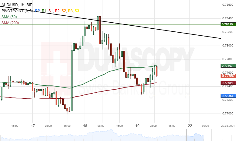 Sin embargo, el promedio móvil de 50 horas en 0,7768 podría proporcionar resistencia al tipo de cambio de moneda en el corto plazo.