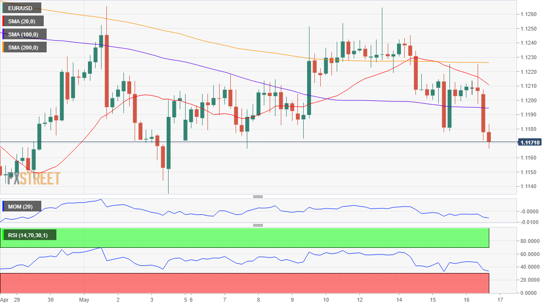 El EUR / USD se está negociando por debajo de sus principales SMA, lo que sugiere un sesgo bajista en el corto plazo.