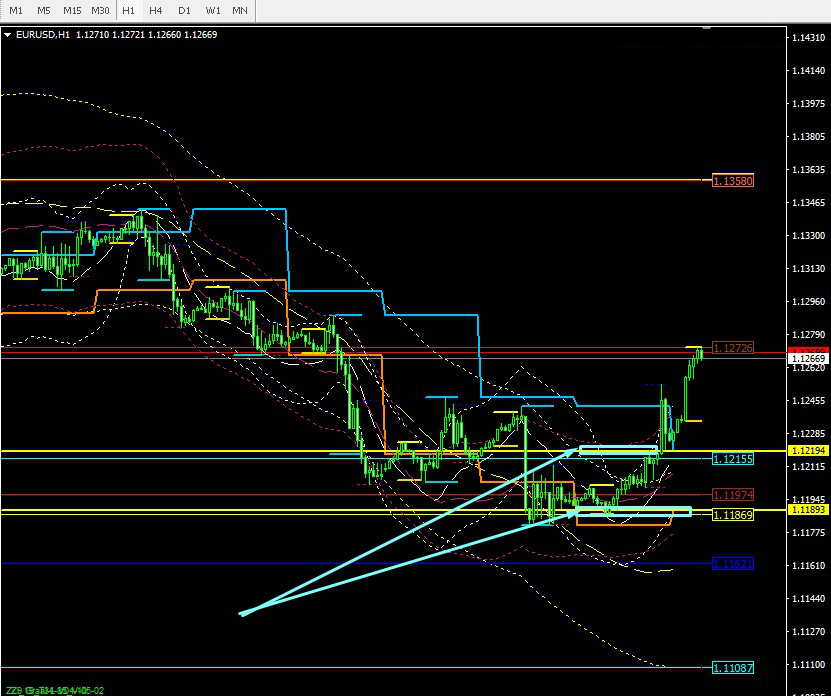 El par EURUSD estaba mostrando movimientos en zig-zag en el momento de escribir. Ayer el precio alcanzó el nivel objetivo en 1.1270.