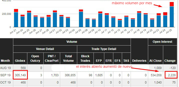 Según los informes de la CME, es obvio que ayer hubo volúmenes máximos para el mes anterior. Los máximos desde principios de año, diría yo.