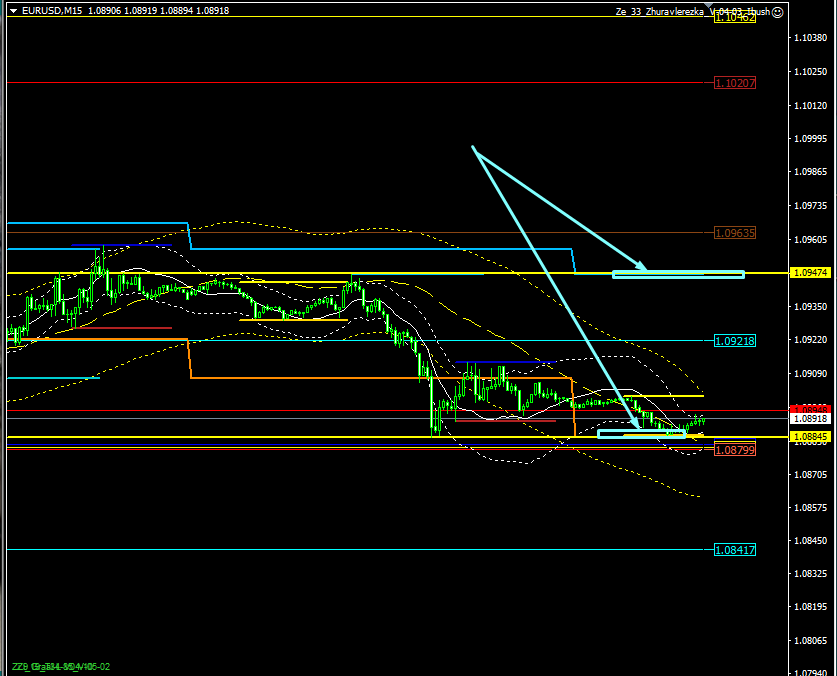 En el día, nos dirigimos a la baja. El objetivo está en 1.0840. Hoy, no voy a vender. Ni conduciré un trading intradía. Pero la tendencia bajista aún está en vigor. En M15, la tendencia bajista será cancelada en 1.0910. En H1, la tendencia bajista será cancelada en 1.10925. En general, todo está cerca. Todo lo que podemos hacer es esperar un retroceso.