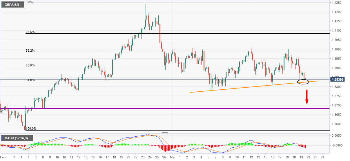 GBP / USD cae hacia la línea de soporte de tres semanas, 61.8% de retroceso de Fibonacci de febrero en medio del MACD bajista.