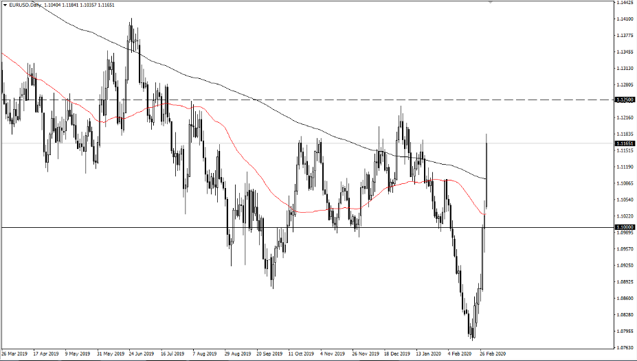 Una vez dicho esto, si el mercado se recupera, es probable que podamos caer de manera considerable para volver a un valor razonable, y aunque nos hayamos desviado hacia arriba durante la sesión, no sería demasiado extraño ver que este mercado se retraiga para tratar de llenar ese vacío que se encuentra en el EMA de 50 días. Una vez dicho esto, el mercado iba a romper por encima del nivel de 1,1250, por lo que es probable que continúe subiendo mucho más, tal vez hasta el nivel de 1,15. Considero que esta desagradable inestabilidad es algo a lo que deberíamos acostumbrarnos, porque el coronavirus va a estar presente por un tiempo, y hay muy poco que los bancos centrales puedan hacer para detener el impacto. Así que, habiendo dicho que los mercados van a tratar de encontrar la mejor manera de asimilar la liquidez. Actualmente, parece que el mercado seguirá siendo muy peligroso, así que mantenga el tamaño de su posición mucho más pequeño de lo habitual, porque, honestamente, sus pérdidas podrían salirse de control con bastante rapidez. Sin embargo, con el tiempo conseguiremos un poco más de claridad, pero mientras tanto es tan difícil operar en este mercado que no deberías ser juzgado en exceso en una u otra dirección. Pienso que el nivel de 1,1250 será un poco exagerado si llegamos allí rápidamente, y anticipo que la venta o incluso una corrección si quieres llamarlo así, podría ser bastante drástica.